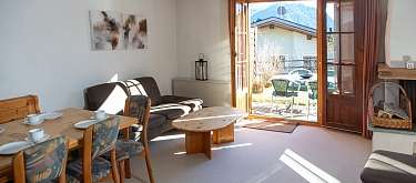 Die Wohnung bietet Platz für bis zu sechs Personen und eignet sich perfekt für Familien oder kleine Gruppen. Der offene Wohn- und Essbereich mit rustikaler Holzküche und gemütlichem Cheminée schafft eine warme, alpine Atmosphäre.